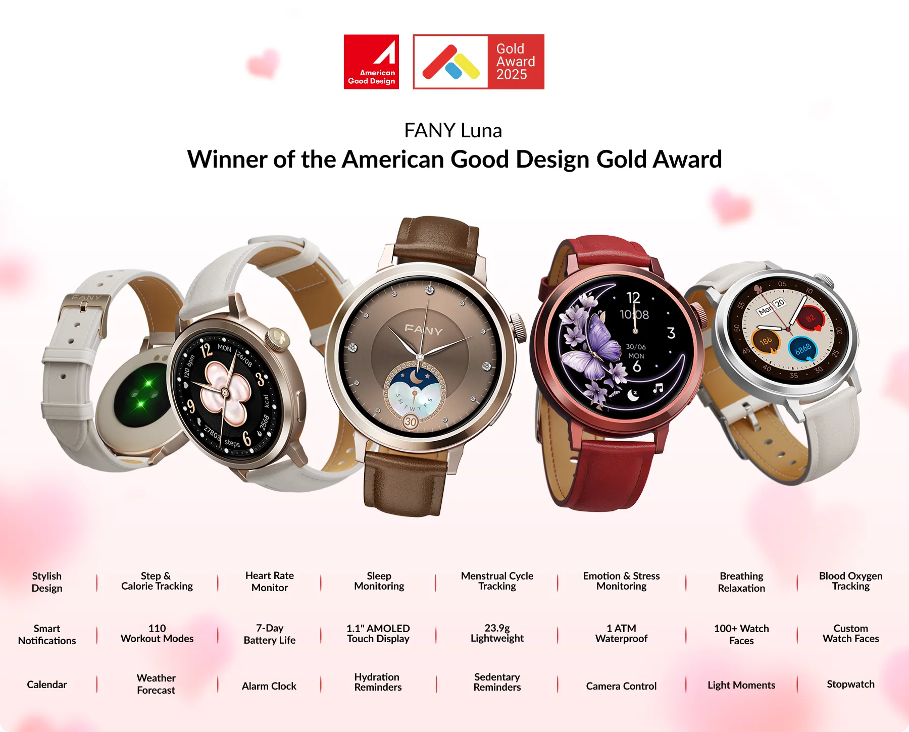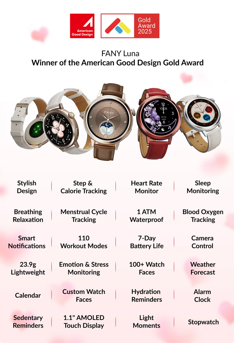 FANY Luna is designed for women —Women move through life with a natural rhythm, shifting between different roles and experiences. Many smartwatches provide basic tracking, but FANY goes further— it’s tailored for every moment, adapts to your energy shifts, and seamlessly integrates into every facet of your lifestyle.
